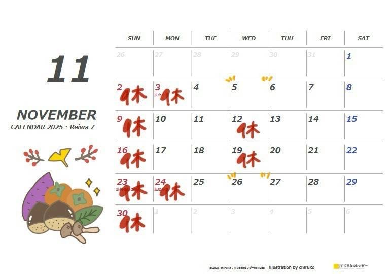 【お知らせ】11月休診日&土曜日予約状況 NEW